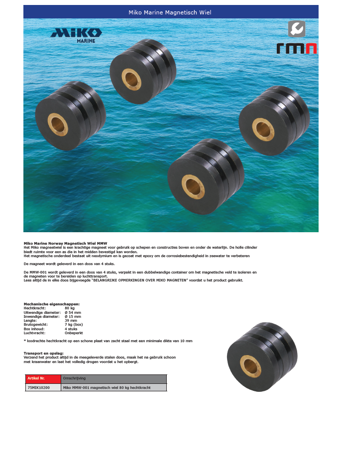 De MPM compact serie wordt geleverd in verpakkingen van 10 stuks, de MMW-001 magnetische wiel serie wordt geleverd in verpakkingen van 4 stuks.