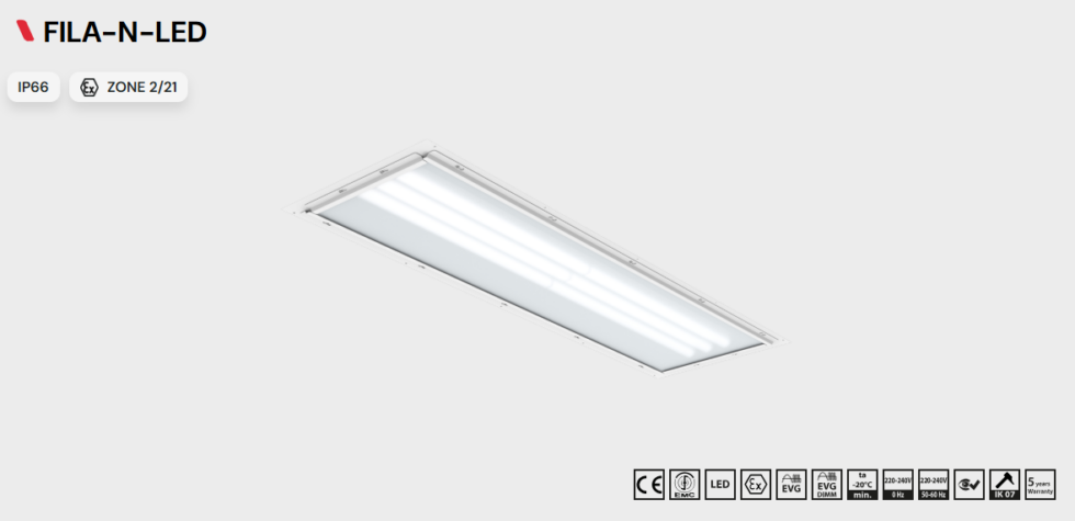 The EXTRA-Ex2/21-LED is an new (2026) developed IP66/IP67 luminaire for ATEX Zone 2, 21 and can be used also in Zone 22. High chemical resistance, splash and dust resistant luminaire EXTRA-EX2/21-LED is designed for lighting of areas with danger of explosion. The lighting fixture is ATEX certified by FTZU Ostrava-Radvanice (certificate type FTZU 25 ATEX 0056X) Ex II 3G Ex nR IIC T6 Gc and Ex II 2D Ex tb IIIC T85°C Db. and IECEx certified (IECex FTZU 25.0020X) Ex nR IIC T6 Gc and Ex tb IIIC T85°C Db . Also available: 3-hours emergency versions (EM), EM AUTOTEST, DALI2, through wiring connection.