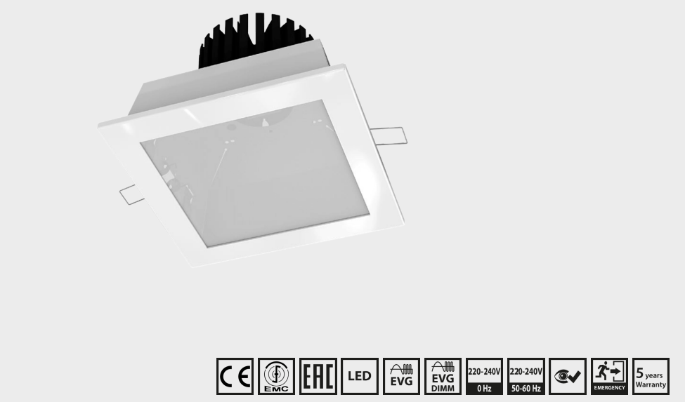 The BANDOG-SQUARE-LED is a built-in square recessed luminaire designed for lighting banks, hotels, administrative and commercial premises. The luminaire is available in light colors 4.000K and 3.000K. Light outputs from 503 up to 1.693 lumen and in dimensions 180x180mm an d 235x235mm. The free height in the ceiling must be at least 130mm.