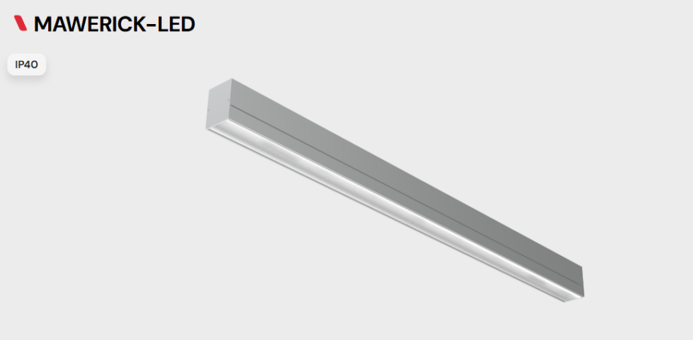The MAWERICK-LED is a surface mount interior LED luminaire designed to illuminate offices, commercial spaces, corridors or reception areas. The luminaire has a high quality AL ELOX aluminium anodised profile and is avialable in6 different lengths. Light color is 4.000K. light outputs from 1.848 up to 7.317 lumen. With the optional cable slings the luminaire can also be placed as free hanging light. Also avaialble as a recessed ceiling luminaire.