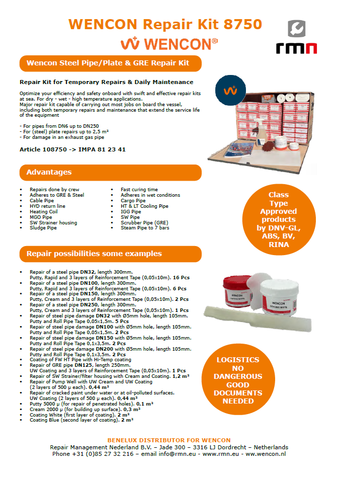 Wencon Steel Pipe/Plate & GRE Repair Kit 8750, IMPA 812341