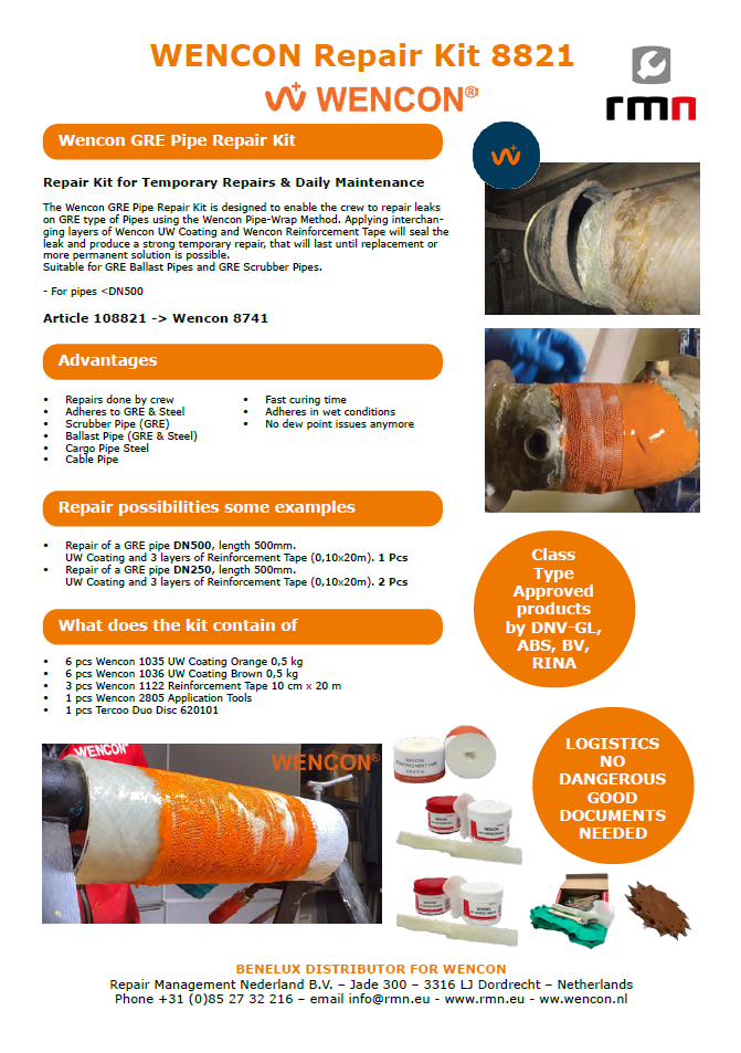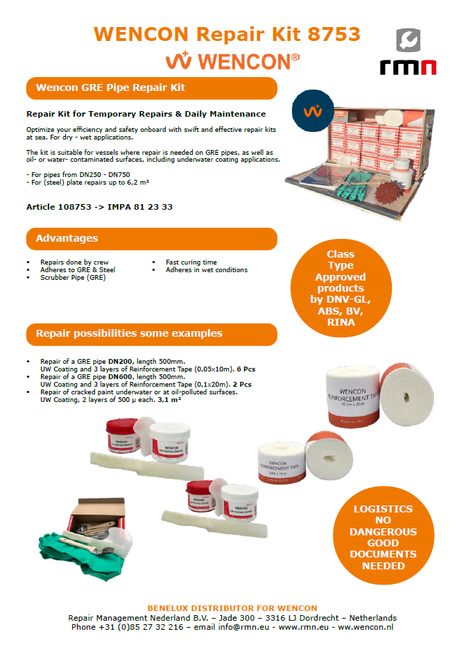 Wencon GRE Pipe Repair Kit 8820 – 8740, IMPA N.A.