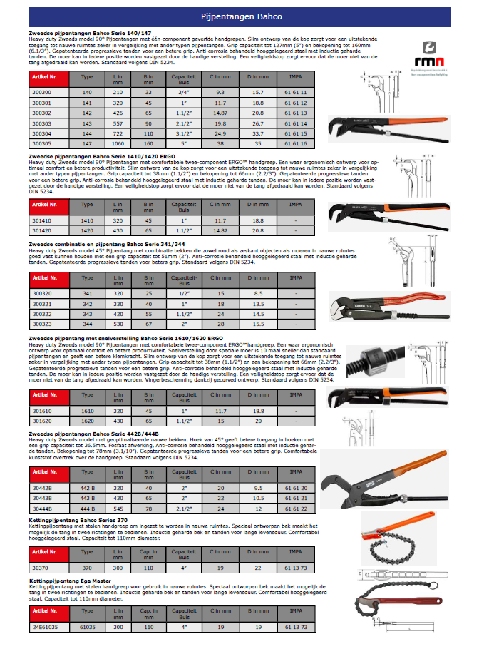 Wij als RMN bieden gereedschappen aan van fabrikanten als Bahco, Wera, Ega Master, Knipex, Picard, Bessey, Stanley, Erdi, Pferd, Gedore etc.: