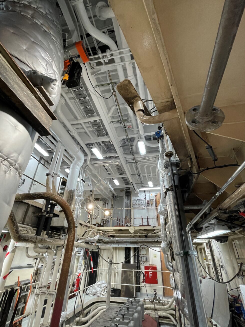 RMN heeft een PO gekregen voor Relighting van de gehele machinekamer van een zeeschip. Alle TL armaturen zijn vervangen door de nieuwste techniek in LED verlichting. De armaturen worden op dezelfde bevestigingspunten geïnstalleerd om te voorkomen dat kabels moeten worden vervangen. De armaturen zijn verkrijgbaar in verschillende lichtkleuren en hier is gekozen voor 5.000K. De armaturen zijn voorzien van een vlakke opaal mat geharde veiligheidsglazen ruit. De behuizing is gemaakt van gepoedercoat staal en voorzien van roestvrijstalen kapklemmen om de ruit te verzekeren. Glas is eveneens voorzien van een stalen veiligheidskabel die de ruit intern verzekert met de behuizing.